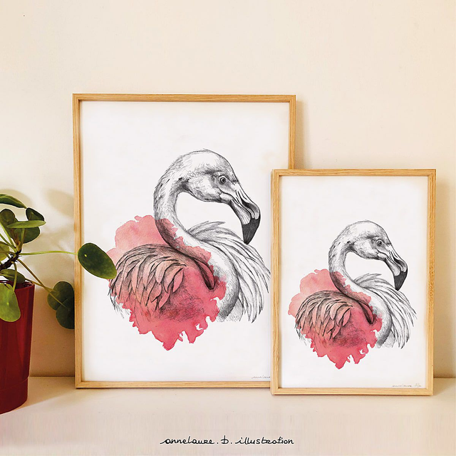 Illustration réalisée au crayon graphite et aquarelle (vendue sans cadre)