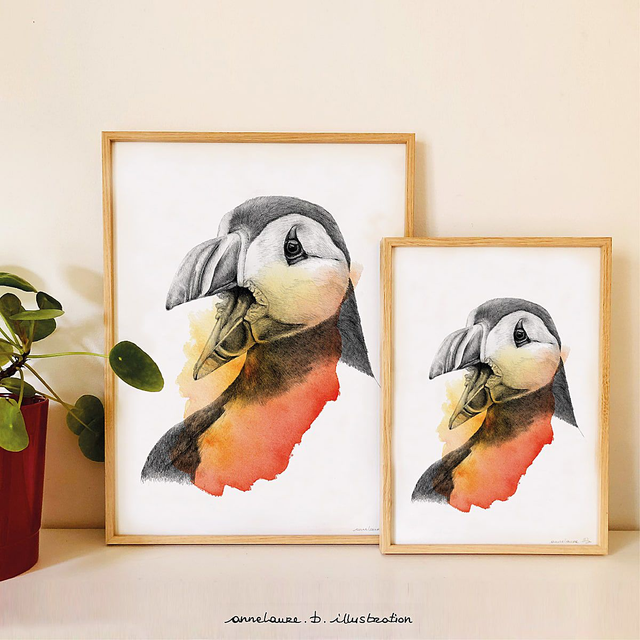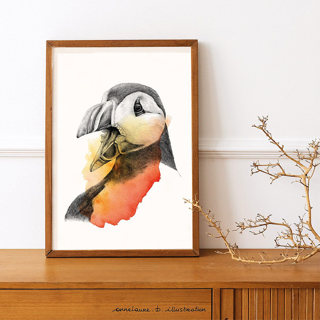 Illustration réalisée au crayon graphite et aquarelle (vendue sans cadre)