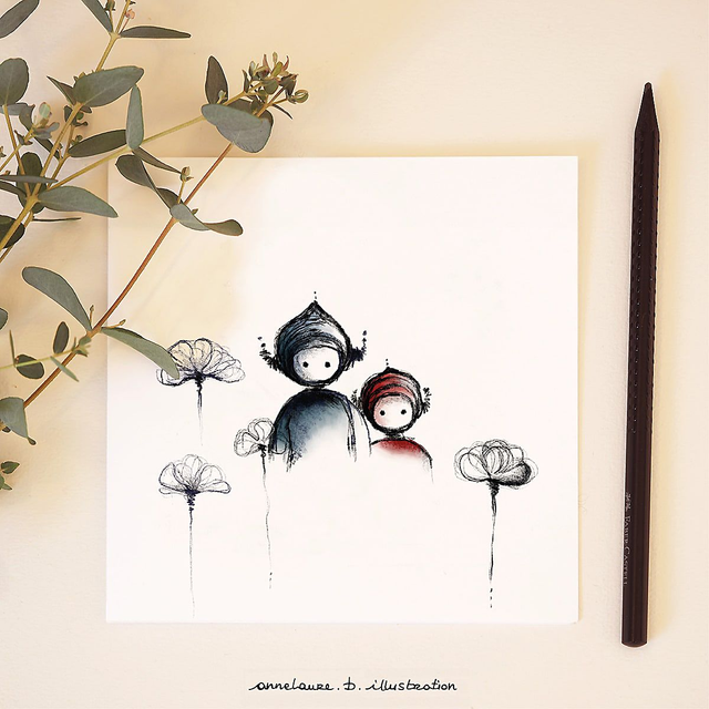 Carte simple 14x14cm. Verso vierge signé "annelaure.b.illustration" en partie basse.