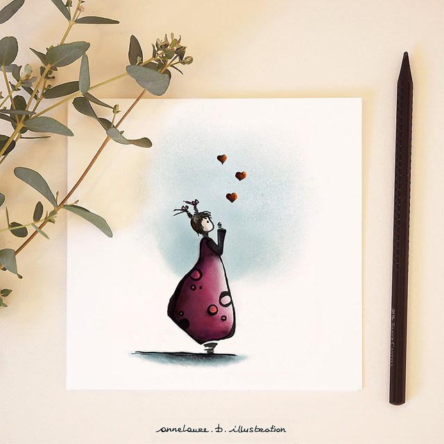 Carte simple 14x14cm. Verso vierge signé "annelaure.b.illustration" en partie basse.