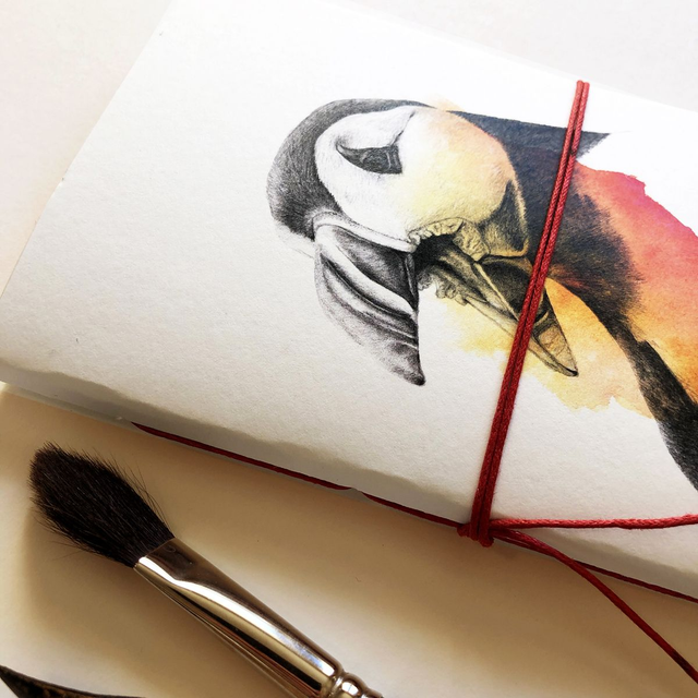 Carnet format 10x15cm. 44 pages 120gr. Relié à la main par un lien de couleur. La couleur du lien peut variée.