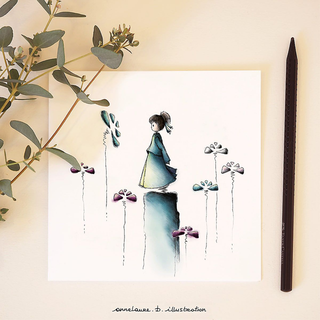 Carte simple 14x14cm. Verso vierge signé "annelaure.b.illustration" en partie basse.